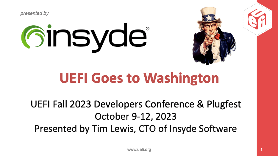 This session will provide an overview of how UEFI is built to meet and exceed United States Executive Orders and NISA, CISA and NSA security standards. The session will explore how secure software development practices, SBOM compliance, and novel implementations of UEFI technology can be leveraged to provide secure and compliant firmware that exceeds the modern software requirements from the US government.