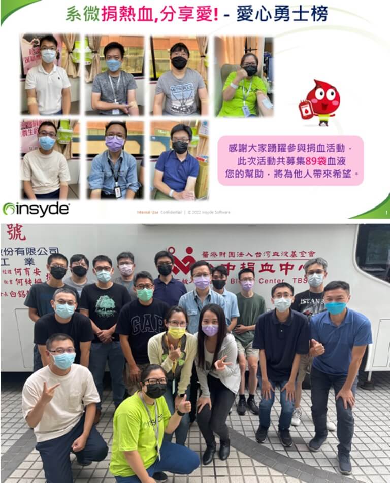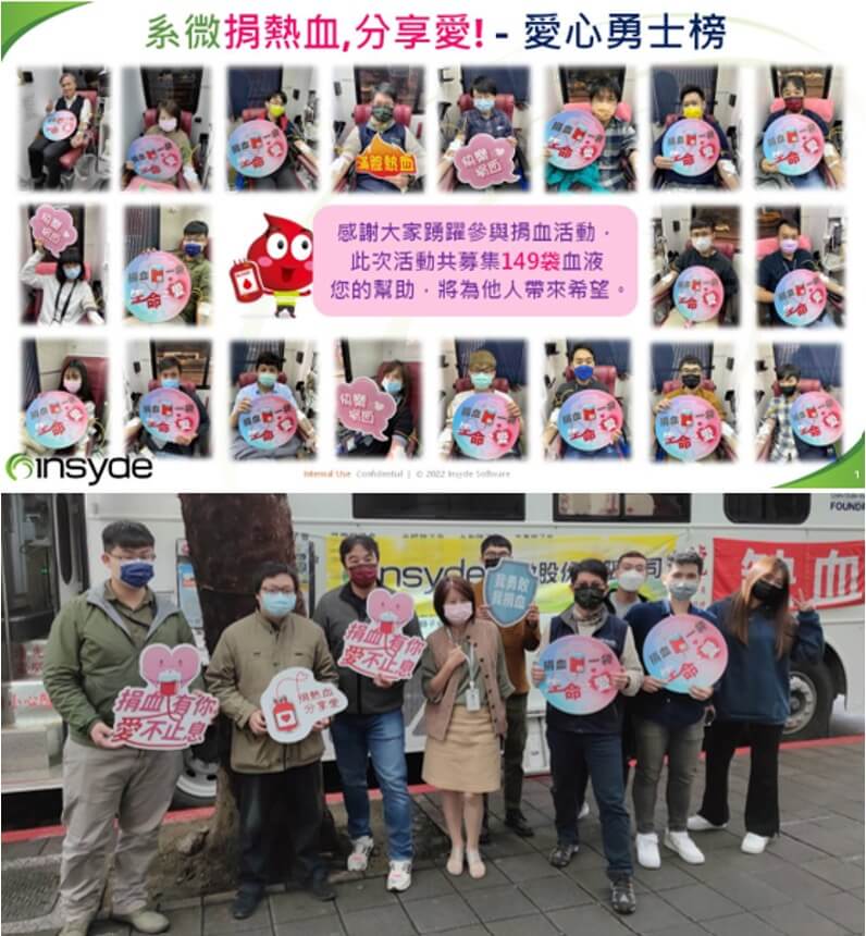 本公司定期辦理熱血傳愛捐血活動,113年廣邀募集共196人次愛心勇士參與,捐血成功袋數共計308袋(每袋250cc),公司為感謝同仁參與捐血活動,特核給捐血同仁公益假。